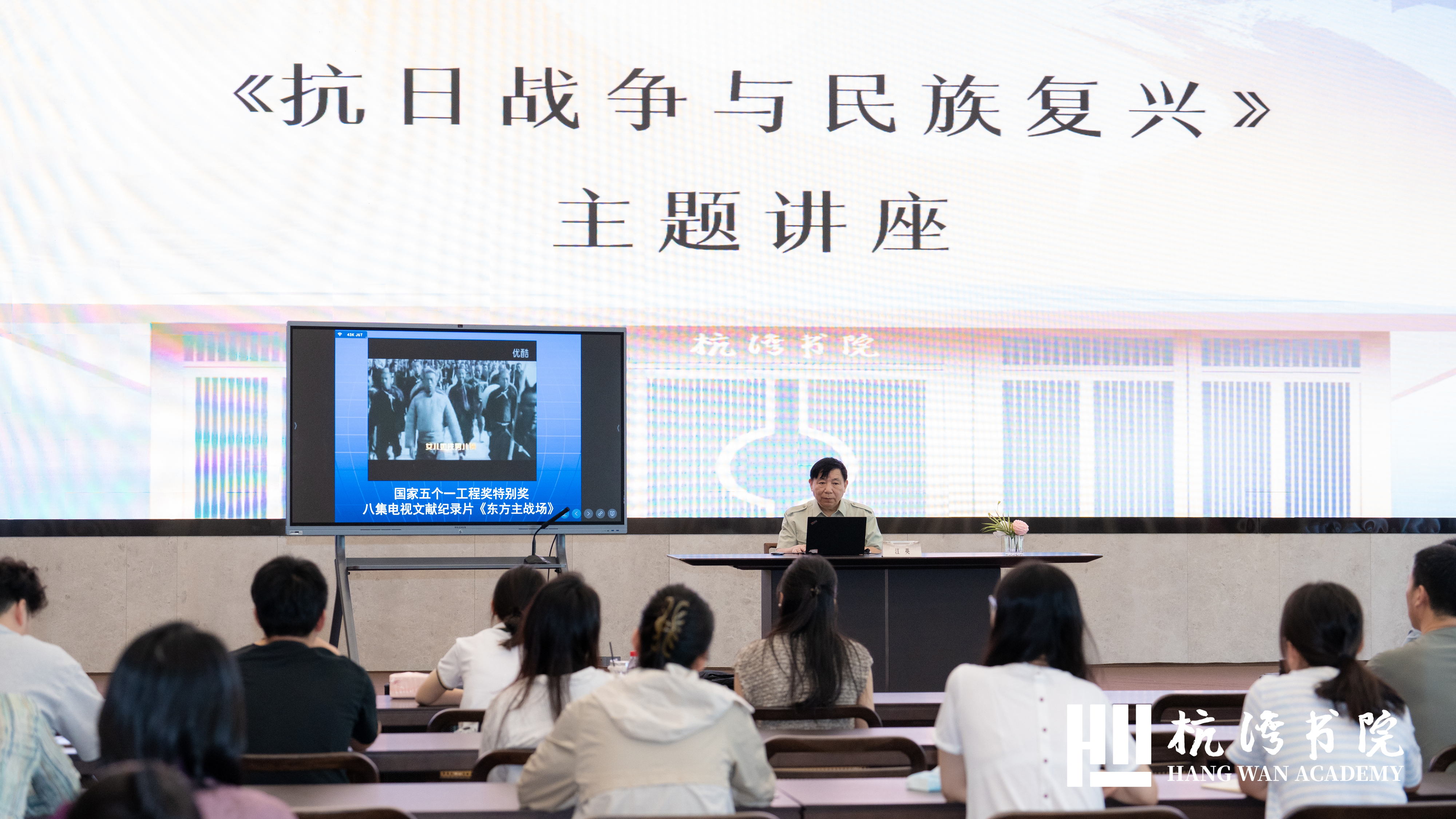阅兵仪式开始前,杭湾书院特聘导师、中国军事科学院研究员江英老师为全体师生进行《抗日战争与民族复兴》的主题分享。
